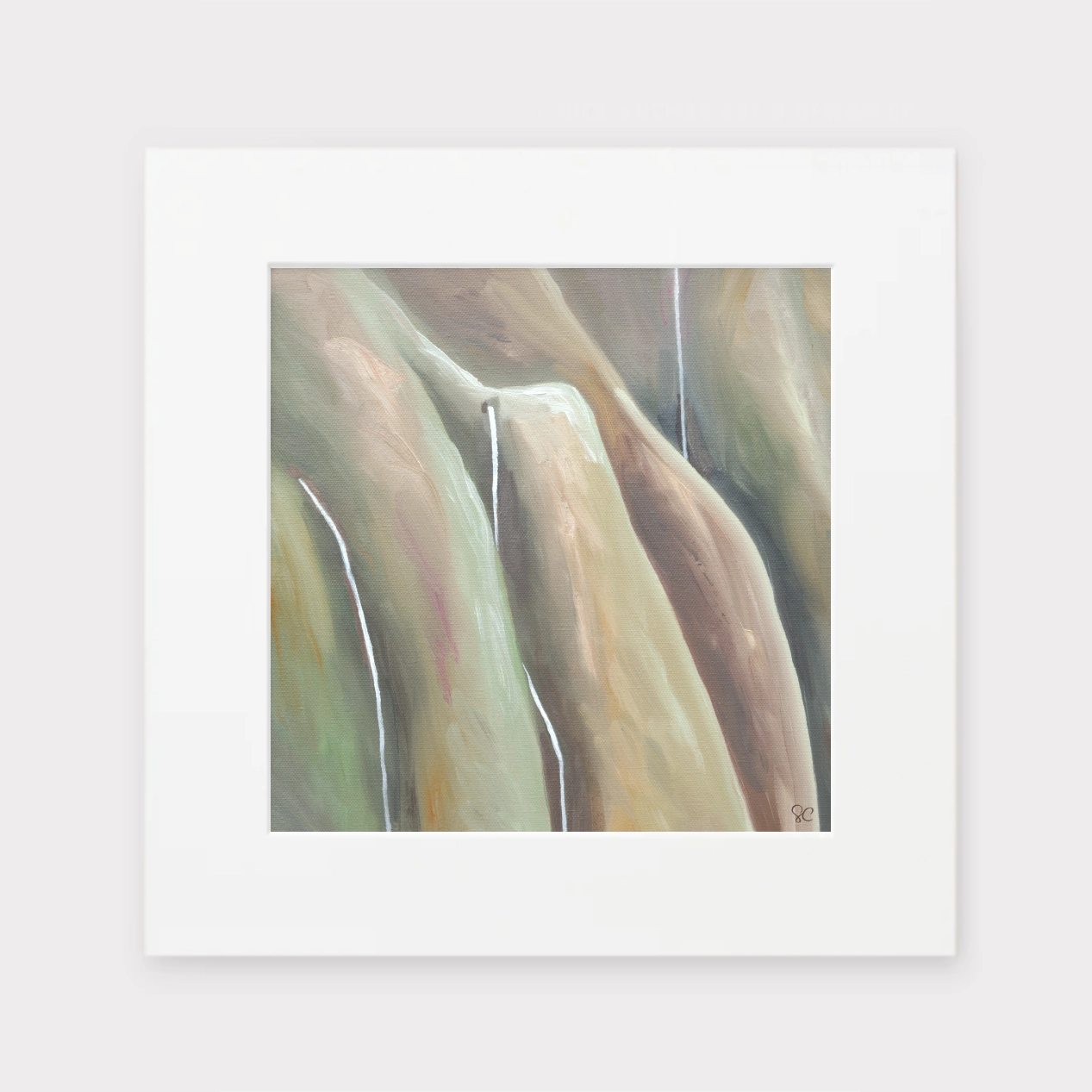 This is a reproduction of an original 12"x12" painting created with oil on canvas. Using sculptural lines and neutral colors, her new work reflects the simple, yet complex beauty of nature, conveys elegance and sophistication, and evokes a sense of peace and wonder.