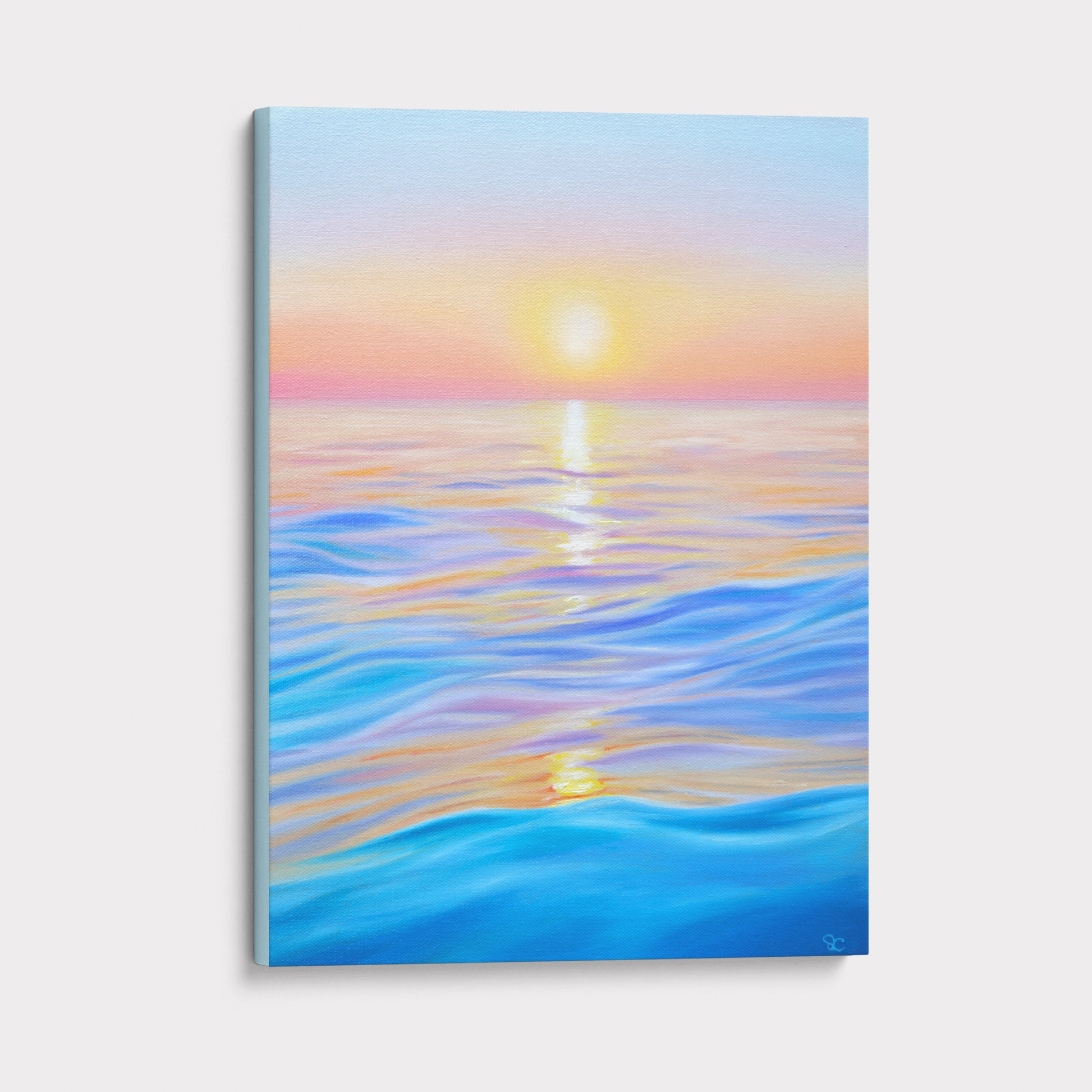 The original painting was professionally scanned and color-matched for accuracy. This giclée (archival) print is produced on high-quality stretched canvas with a seamless, solid-printed edge.