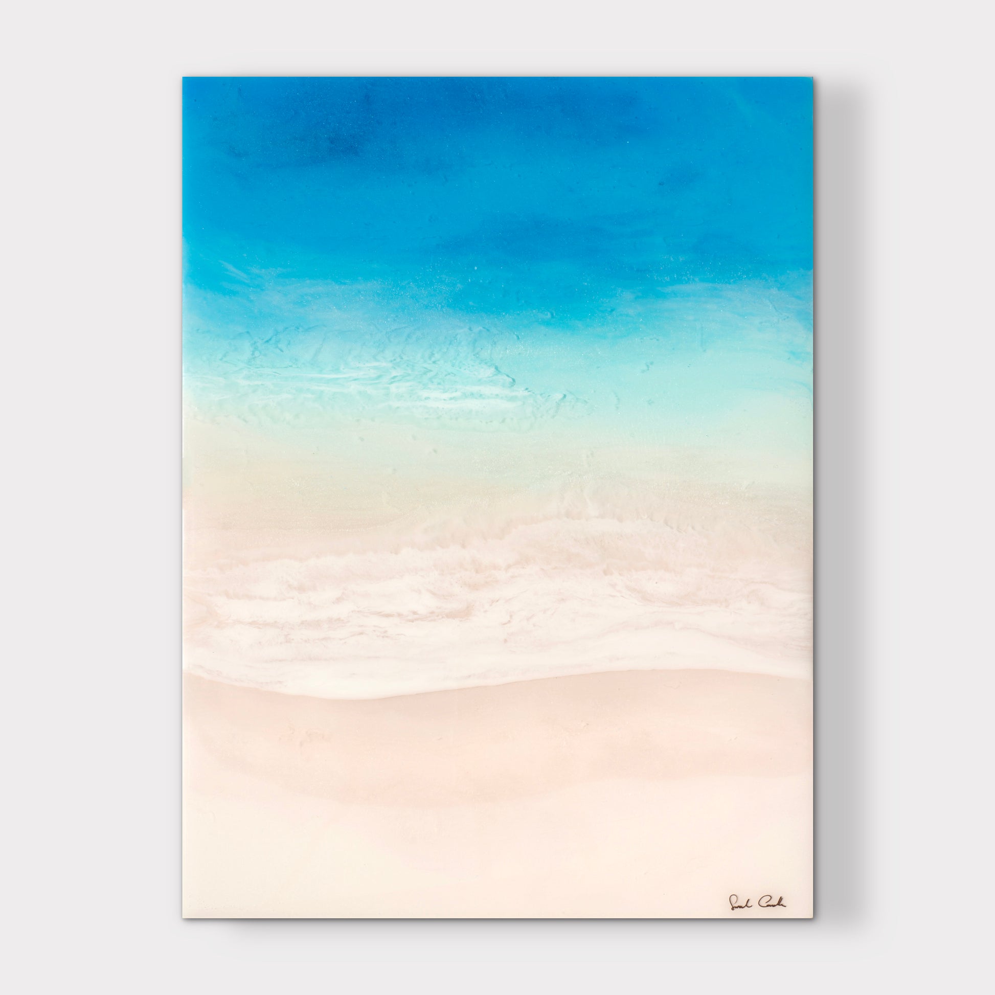 This acrylic print is an open edition reproduction of an original painting created with layered acrylic paint and resin on wood. Inspired by Hawaii’s beaches, Sarah captured the ocean’s beauty through vibrant colors, flowing movement, and organic forms, building each layer to mirror the sea’s rhythm. Since closing her Kakaʻako studio in 2021, she has shifted away from resin, making these pieces a meaningful reminder of her early creative chapter.