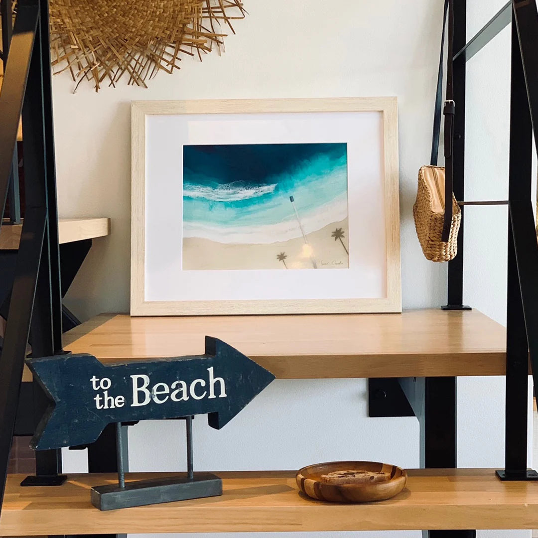 This matted print is reproduction on an original painting created with layered acrylic and resin on wood. Inspired by Hawaii’s beaches, Sarah captured the ocean’s beauty through vibrant colors, flowing movement, and organic forms, building each layer to mirror the sea’s rhythm. She no longer paints with resin after closing her Kaka'ako studio in 2021, making these works a special part of her earlier works.
