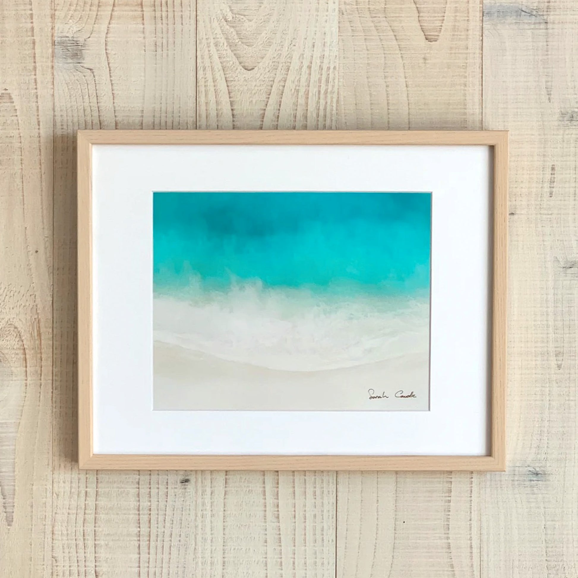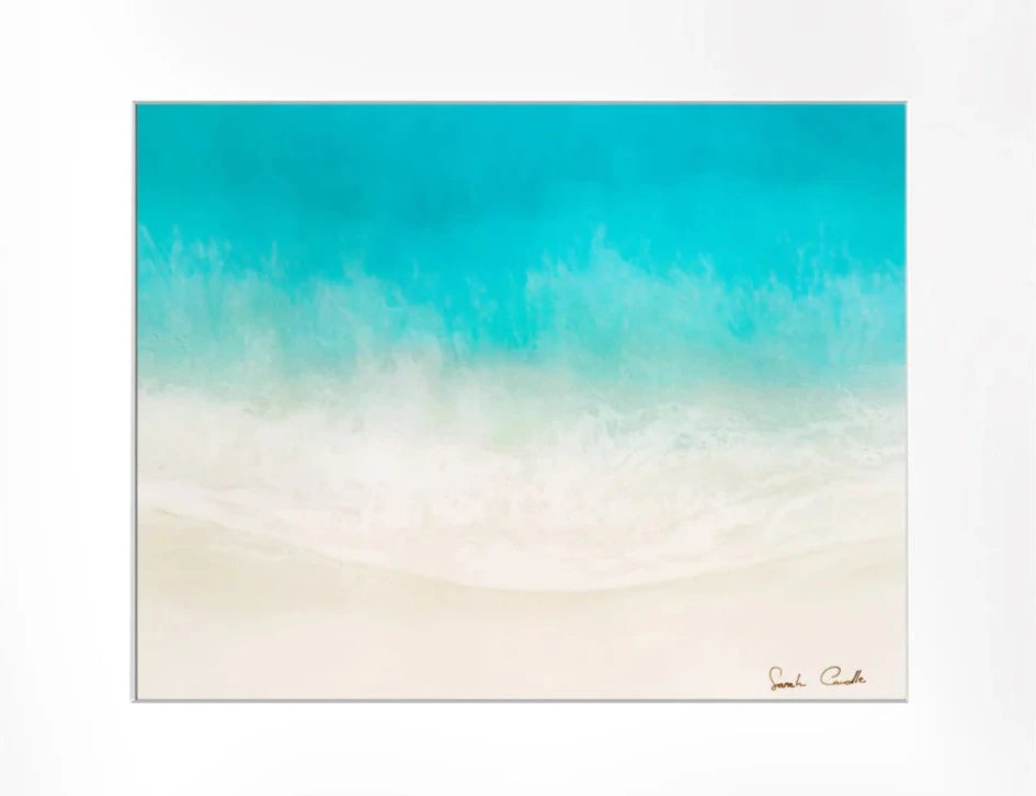 This matted print is reproduction on an original painting created with layered acrylic and resin on wood. Inspired by Hawaii’s beaches, Sarah captured the ocean’s beauty through vibrant colors, flowing movement, and organic forms, building each layer to mirror the sea’s rhythm. She no longer paints with resin after closing her Kaka'ako studio in 2021, making these works a special part of her earlier works.