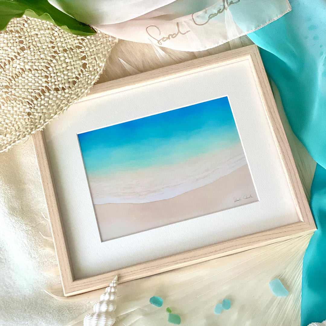 This matted print is reproduction on an original painting created with layered acrylic and resin on wood. Inspired by Hawaii’s beaches, Sarah captured the ocean’s beauty through vibrant colors, flowing movement, and organic forms, building each layer to mirror the sea’s rhythm. She no longer paints with resin after closing her Kaka'ako studio in 2021, making these works a special part of her earlier works.