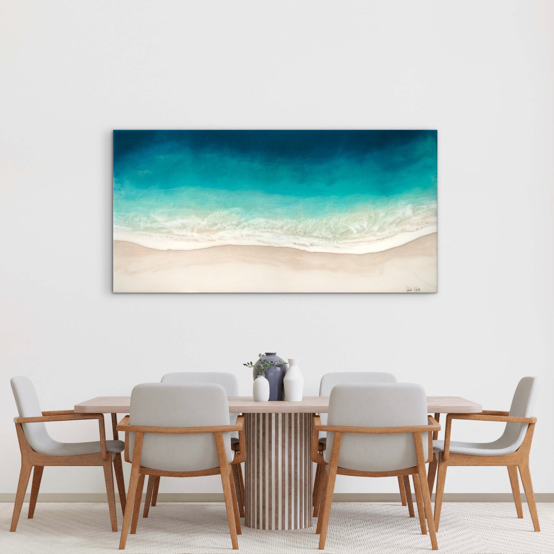 This acrylic print is an open edition reproduction of an original painting created with layered acrylic paint and resin on wood. Inspired by Hawaii’s beaches, Sarah captured the ocean’s beauty through vibrant colors, flowing movement, and organic forms, building each layer to mirror the sea’s rhythm. Since closing her Kakaʻako studio in 2021, she has shifted away from resin, making these pieces a meaningful reminder of her early creative chapter.