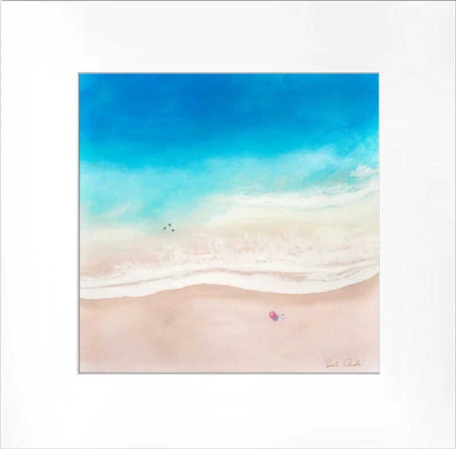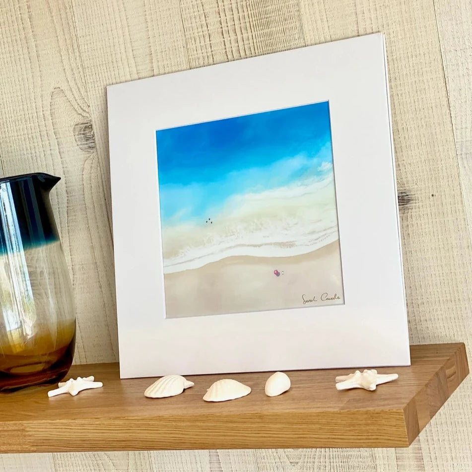 This matted print is reproduction on an original painting created with layered acrylic and resin on wood. Inspired by Hawaii’s beaches, Sarah captured the ocean’s beauty through vibrant colors, flowing movement, and organic forms, building each layer to mirror the sea’s rhythm. She no longer paints with resin after closing her Kaka'ako studio in 2021, making these works a special part of her earlier works.