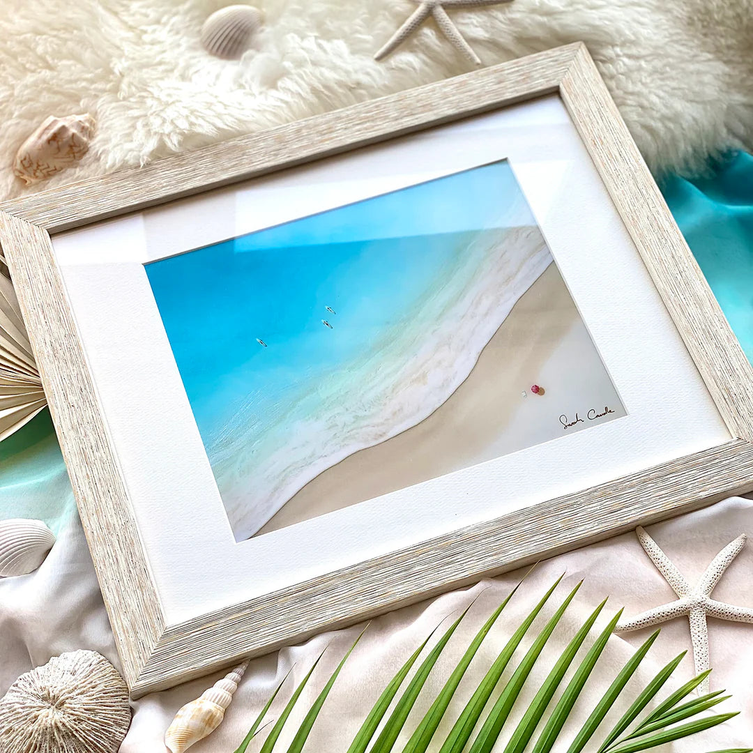 This matted print is reproduction on an original painting created with layered acrylic and resin on wood. Inspired by Hawaii’s beaches, Sarah captured the ocean’s beauty through vibrant colors, flowing movement, and organic forms, building each layer to mirror the sea’s rhythm. She no longer paints with resin after closing her Kaka'ako studio in 2021, making these works a special part of her earlier works.