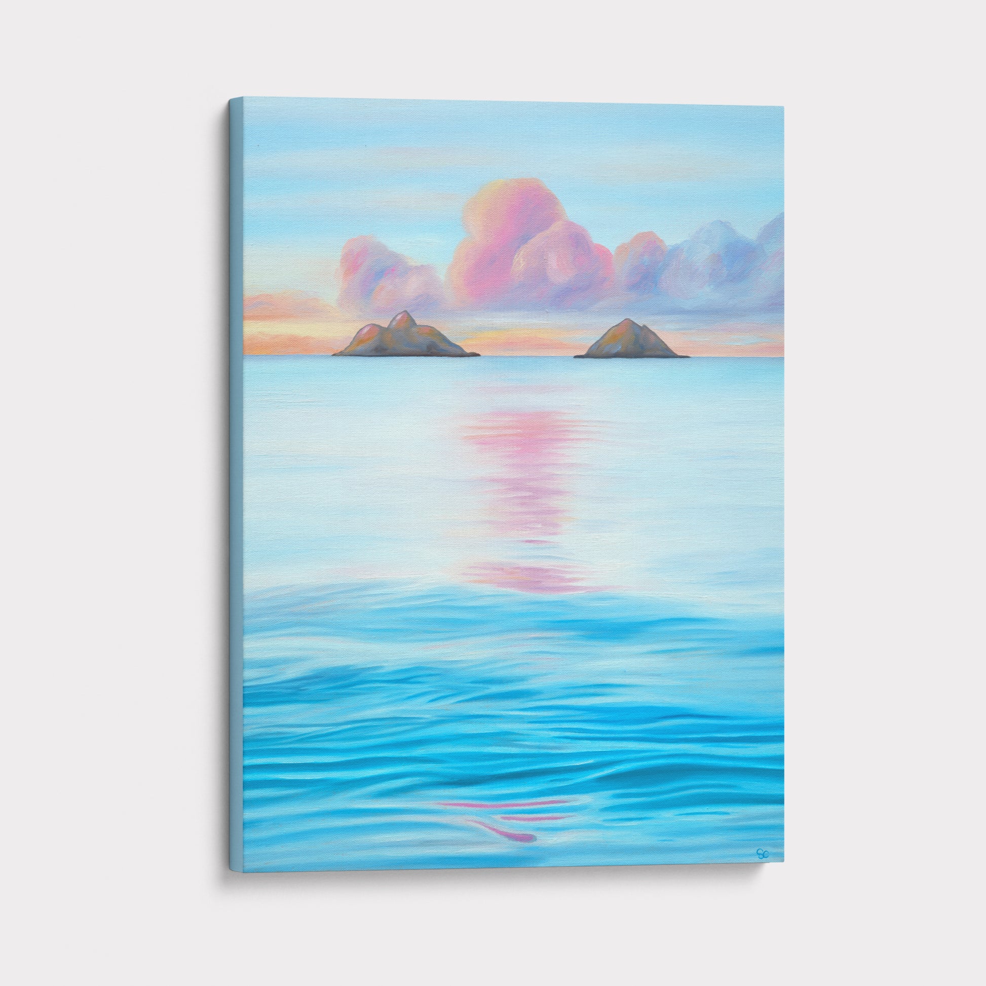 The original painting was professionally scanned and color-matched for accuracy. This giclée (archival) print is produced on high-quality stretched canvas with a seamless, solid-printed edge.