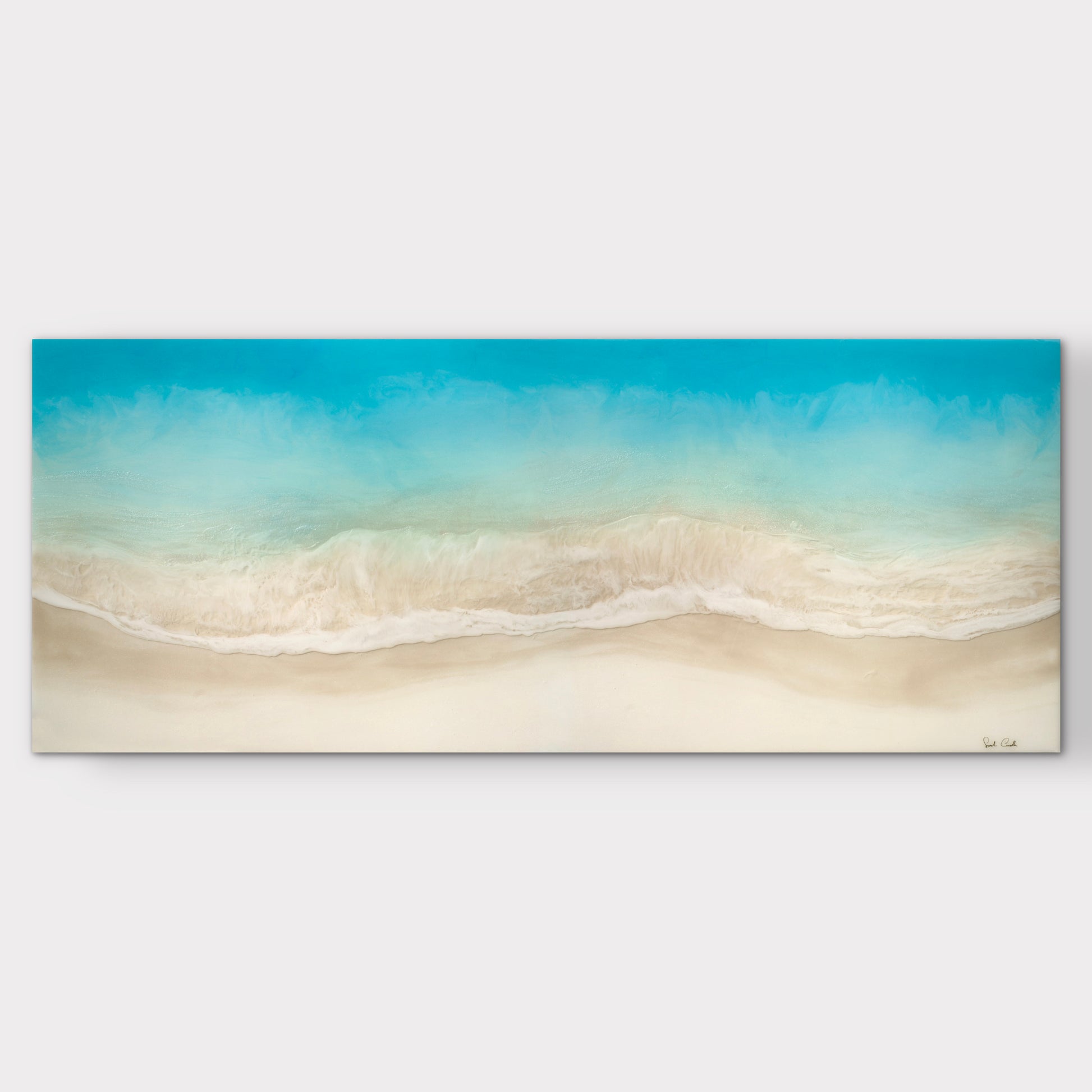 The original painting was professionally scanned and color-matched, then produced on premium photo paper and mounted behind glossy 4 mm acrylic glass—the gallery standard. This finish gives the artwork vivid depth and a modern look that closely resembles the resin in Sarah’s original paintings. An aluminum Dibond backing ensures stability, and each piece arrives ready to hang.