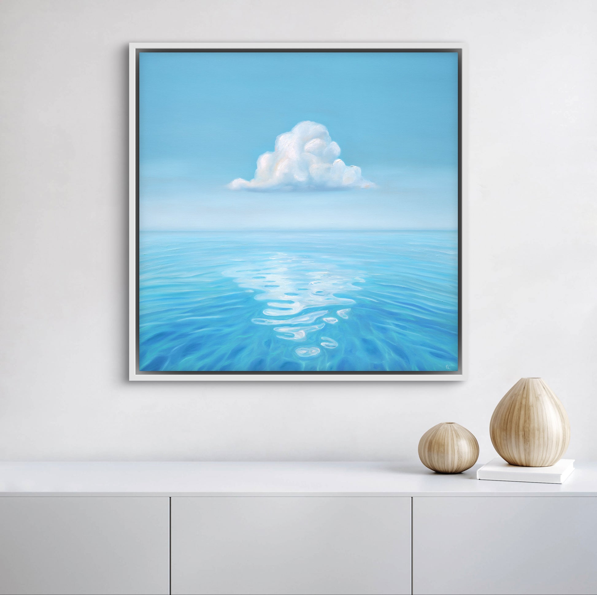 This is a reproduction of an original 30" x 30" painting created with oil on canvas. Using sculptural lines and neutral colors, her new work reflects the simple, yet complex beauty of nature, conveys elegance and sophistication, and evokes a sense of peace and wonder.