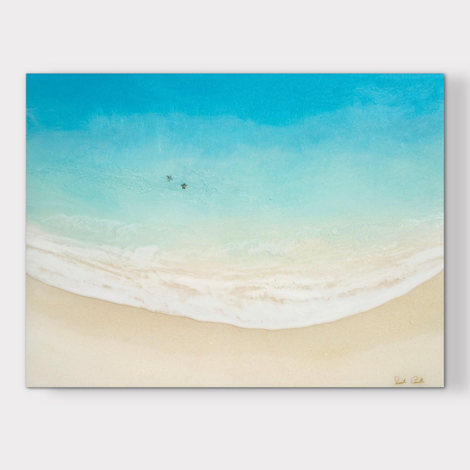 This acrylic print is an open edition reproduction of an original painting created with layered acrylic paint and resin on wood. Inspired by Hawaii’s beaches, Sarah captured the ocean’s beauty through vibrant colors, flowing movement, and organic forms, building each layer to mirror the sea’s rhythm. Since closing her Kakaʻako studio in 2021, she has shifted away from resin, making these pieces a meaningful reminder of her early creative chapter.